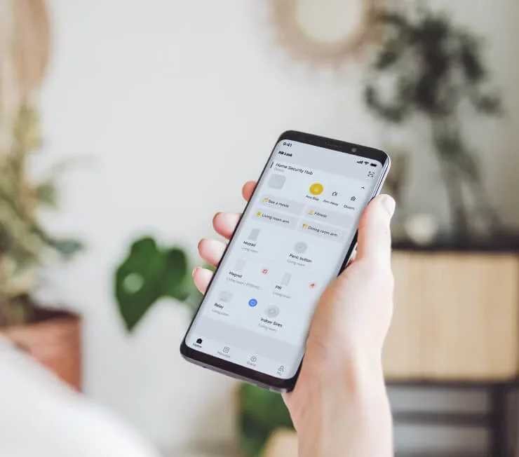 De meeste draadloze alarmsystemen, inclusief Roombankerbieden een mobiele app waarmee u het systeem altijd en overal kunt bewaken en besturen, waardoor dit vandaag de dag de gemakkelijkste en handigste methode is. RoombankerMet de RB-Link-app van de app, beschikbaar voor zowel iOS als Android, kunt u het systeem in- of uitschakelen, geautomatiseerde scènes aanpassen en de status van het apparaat controleren, zoals signaalsterkte en batterijduur. Voor extra flexibiliteit, vooral in verschillende scenario's of voor meerdere gebruikers, Roombanker biedt ook een draagbare sleutelhanger voor alarmsysteem en een alfanumeriek alarmtoetsenbord voor snelle systeembewerkingen.