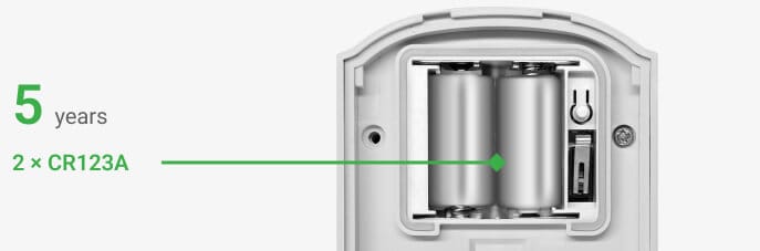 The pet-friendly PIR sensor is powered by a standard CR123A lithium battery, providing up to five years of worry-free use and easy replacement.