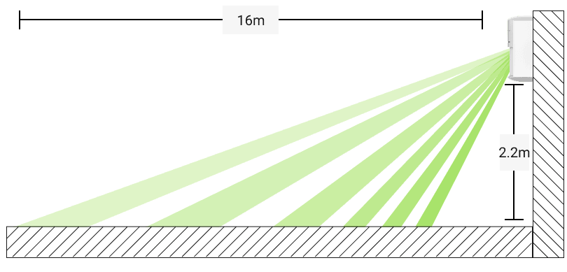 - PIR sensor should be installed at a suitable heightbetween 1.8 and 2.2 meters according to user manualstates;